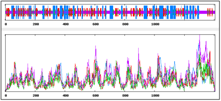 The secondary structure analysis of IGF-IR showed alpha helixes are higher in percentage rate (27.03%) with 380 followed by extended strands with 311 (22.12%) numbers. Predominantly, maximum percentage (40.26%) of secondary structure lies as a random coiling with 566, whereas 149 (10.60%) numbers are utilized for the preparation of beta turn in the protein (Figure 2).