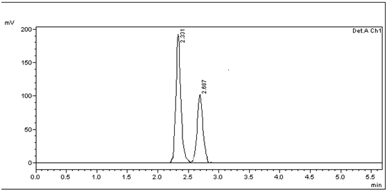 For the RP-HPLC, chromatographic conditions were optimized to get best resolution and peak shape. The selection of mobile phase was based on peak parameters like symmetry, theoretical plates and capacity factor. Symmetrical peaks with good separation (retention time for Lamivudine is 2.331 and Tenofovir disoproxil fumarate is 2.687) were obtained with reverse phase Thermo ScientificTM HypersilTM BDS 5µ C18 120A (250×4.60mm i.d) column. The mobile phase containing Acetonitrile: phosphate buffer PH-3.5(80:20% v/v) was used at a flow rate of 1.2ml/min. The optimum wavelength for detection and quantification was at 260nm, at which good detector response was obtained for both the results are given in Table 1.