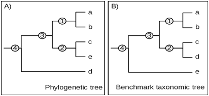 Keywords: taxonomic tree, phylogenetict, clade, tree topology, clustering algorithm, taxonomic, fidelity index f