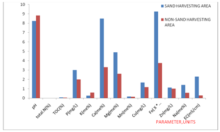 Major concentration differences for the soil samples over the two regions were seen for the parameters: calcium, magnesium, sodium and electrical conductivity where such parameter values were higher in the sand harvesting area.