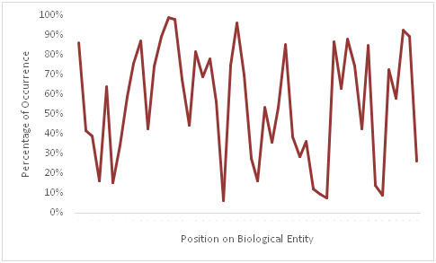 Figure 1 Hypothetical 2-Dimensional Landscape of an Occurrence (such as GC content) across a Biological Entity (such as a chromosome).