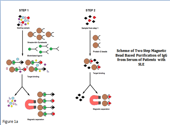 Figure 1a Anti-DNA antibody affinity purification with oligo-(dT) M-280 magnetic Dynabeads and protein G Dynabeads: A two-step design for anti-DNA antibody isolation and purification.