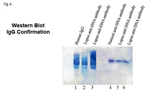 Figure 4 Western Blot analysis of purified anti-DNA antibodies of normal individual and SLE patients.