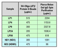 Figure 3 Agilent 2100 banding patterns of anti-ssDNA antibodies purified by SA-oligo-(dT)/ Protein G Beads versus Melon™ Gel IgG Purification.