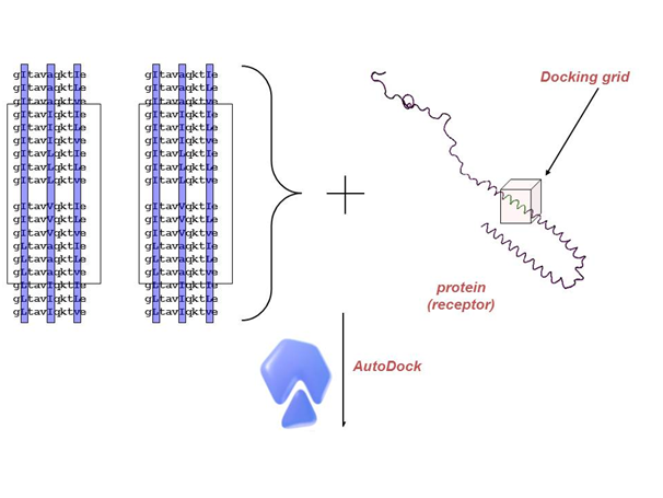 To perform docking of each of the 11-mer peptide with SNCA protein, AutoDock 4.2 from The Scripps Research Institute was used.21 AutoDock along with the associated AutoDockTools were used to prepare each of the ligands and protein for docking. A 3D grid, which specifies the search space, was prepared around the 11-mer region of the SNCA and subsequent docking of the peptide from the combinatorial library was performed on this region of the protein. The docking results were viewed and analysed using PMV, a freely distributed Python-based molecular viewer.22