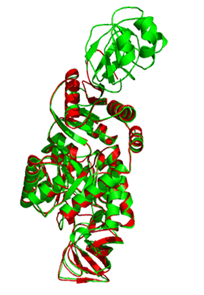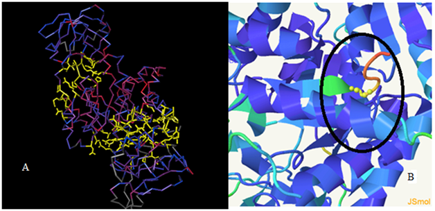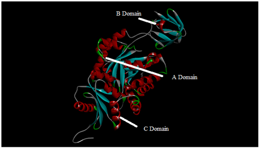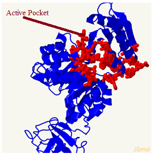 Figure 18 The model structure of pyruvate kinase showing the predicted active pocket, where active pocket is represented in red color (generated by JMOL).