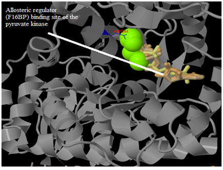 Figure 19 Binding site predicted in the M. tuberculosis pyruvate kinase for allosteric substrate Fructose 1,6, bisphosphate (F16BP) was as shown in above image.