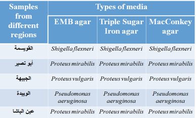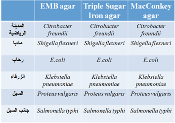 - Three different types of media used for identification, (EMB agar, Triple Sugar Iron agar, and MacConkey agar).