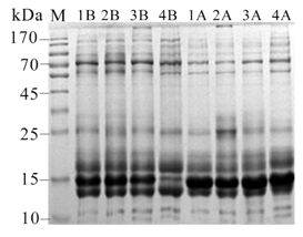 25μg urinary proteins were separated using 12% SDS-PAGE gel. There were consistent changes before and after cola treatment. As is shown in Figure 1, during 55-100kDa and 130-180kDa, the bands are lighter after drinking cola, while about 15kDa, the bands are darker, indicating that drinking cola will have an obvious impact on the rat's urinary proteome (Figure 1).