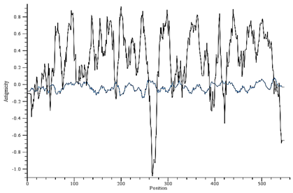 The results of multiple sequence alignment by ClustalW wrapper between the six protein sequences which have same amino acid size number (548 a.a.) with substitution in one or two amino acids for each sequence. Provide identity score 542/548 (98.9%), similarity score 547/548 (99.8%) and gaps score 0/548 (0.0%). The reason behind these high scores is the similar number of amino acids that cause no gaps because the gaps designed to produce same strings length after alignment, also the law value of substitutions to generate these values. Furthermore, the sequence alignment leads to similarity plot as demonstrated in Figure 1, the plot Presents highest Similarity scores between the six proteins sequences for each residue of 10‒>20 amino acids. Moreover the highest scores recorded for 2.0 and more of the string positions (120‒>130; 170‒>180; 220‒>240; 410‒>430 and 520‒>550) also the highest results ever was in position 220‒>260; on the other hand the lowest similarity that scores recorded was 1.0 in the position 210‒>218 but shown higher than the main of expect. The Hydrophobic and Hydrophilic. The importance of hydrophobic and hydrophilic estimation is related to the two different schools in Immunoinformatics. Firstly, the method of declared the antigenic sites on proteins has revealed that the hydrophobic residues.1,26,27 Secondly, welling method in 1985, assumed that antigenic regions are primarily hydrophilic regions at the surface of the protein molecule.28 The results of hydrophobic and hydrophilic estimation depend on to calculate the amino acids physiochemical properties. Figure 2, evince he amino acids frequencies distributions, shows the higher summation frequencies score for the amino acids which have Hydrophobic properties (A, F, G, I, L, M, P, V, and W) that count 340/548 a.a. and the frequency scored 0.620 and the lower for the amino acids which have Hydrophilic (C, N, Q, S, T, and Y) count 133/548 a.a. with frequency score 0.243, with the remaining 75/548 a.a. and frequency 0.137 which have not hydrophobic or hydrophilic physiochemical properties. The antigenic epitopes binding prediction Because of the high similarity of the six protein sequences, the results of the antigenic epitopes binding prediction came in same for all over the six sequences. Thus, Table 2 illustrates the results with avoiding the repetition and indicated in sort from higher to lower score, also declare the position of an amino acid within a maximum score. The sequences of residues represented the peptides of epitopes that recognize and bind with the antigen of the bacterial pathogen which cause the Brucellosis in cattle as in the Figure 3, shown as a linearly interpolate between multi‒dimensional points display as a comparison between method of versus welling method in 1985, The antigenicity plot starts with 0.0 score in the middle of vertical line and the score raise in two directions, up positively and down negatively; the positive results indicate the present to be a part of antigenic sites. by applying the converted amino acids sequence to numerical scores represent the antigenic prediction for every single position within GNU PSPP program to show a significant supremacy and confidence with the method of which display in black line which stays in the top score for all residues except one position 260‒>270.1 Similarly, many types of research are a concert with these results.29 The blue linear represent the plot results with the.27 The black linear the plot results.29