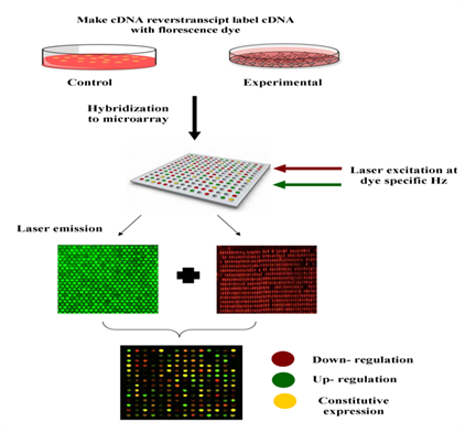 In 2010 Choi et al.,30 established melanoma cell line named primary culture of melanoma cell derived from lymph node (PML-1). Through DNA microarray and two dimensional matrix assisted laser desorption ionization time of flight mass spectrometry analysis they have found that PML-1 decreased the expression of melanogenesis markers including TYR, MITF, and TRP-1 genes. In another study, gene expression profiling of three well known skin lightener was illustrated by Gruber31 using DNA microarray. Human epidermal keratinocyte were treated with variable ratios of hydroquinone, kojic acid, and niacinamide. After 24hours of treatment, total RNA was extracted out from the culture, amplified and labeled them with fluorescent dyes. The fluorescently labeled RNA was applied to the DNA microarray chips having TYR, COX1, and FTH1, MC1R gene immobilized on it and the chips were hybridized overnight. Results of their experiment confirmed that all three compounds show decreased expression of three genes i.e. TYR, COX1, and FTH1 but have little effect on MC1R gene.