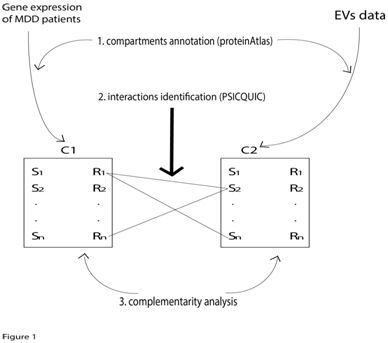 Here, BC represents the brain compartment; CC the cancer compartment, R and S represent receptor and secreted molecules, respectively. We called these two recipients "secretome" and "receptome" and they can be considered as transmitter devices in which the receptive component can be distinguished from the broadcaster component (Figure 1). As a broadcasting system, the two compartments can communicate with each other via serum/blood by means of EVs. The algorithm creates data repositories based on four distinct published databases: