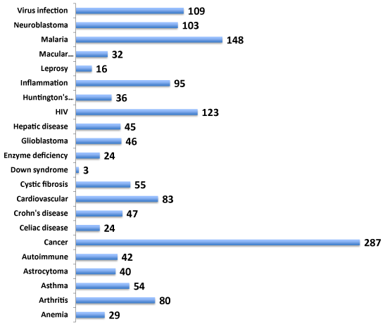 Gene function is often involved across multiple cell types eliciting cell type-specific networks of gene interactions. Identification of gene targets related to multiple diseases offers an advantage of benefitting the drug discovery rationale for therapy for numerous diseases and related disorders. Hence, the involvement of NeuroGenes both in neurologically related and unrelated diseases was next investigated from the NCBI PheGenI data (Figure 2). The NeuroGenes SNPs were also found to be associated with diverse diseases including allergy, cancer, cardiovascular, inflammation, macular degeneration and infections (Supplemental Table S3). Cancer (including astracytoma, glioblastoma and neuroblastoma) had the largest number of gene-associated evidence (n=189). These results underscore the complexity of genes’ involvement in multiple diseases.