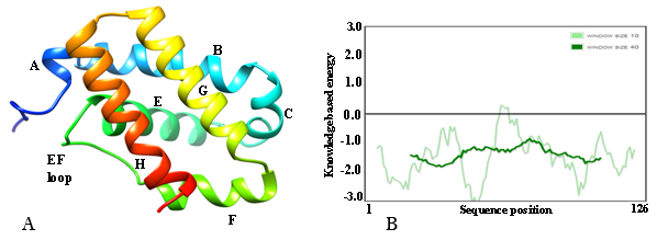 Amino acid sequence plays a very important role in determination of 3D structure of any protein, as each amino acid has a different propensity to form secondary structure like helix, beta-strand, coil and turn. Therefore, it is necessary to characterize the physicochemical parameters of a protein before analyzing its 3D-structure. In the present study, Expasy Protparam web server was used to characterize the physicochemical parameters of trHbN of M. xanthus. The amino acid sequence of the hypothetical protein was predicted to have 126 amino acids with molecular weight of 13579.53 Da and theoretical isoelectric point (PI) of 6.04. Extinction coefficient was calculated to be 4470 (with 10% error in the absence of tryptophan residue). The instability index (II) was calculated to be 36.13 and classified as the stable protein. The negative Grand average of hydropathicity (GRAVY) of -0.055 indicates that the protein is hydrophilic and soluble in nature. Alanine (15.9%), leucine (7.9%), glutamic acid (7.10%), histidine (4.8%), and methionine (4.8%) constitute the major fraction of amino acids of the trHbN and have greater propensity to form helical structure.