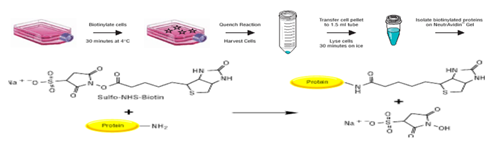 In vitro biotinylation and iTRAQ mass spectrometry was used to assess membrane protein changes in the murine endothelial cell cultures (bEnd.3). Cells were irradiated with 25Gy and surface biotinylation was performed using NHS-LC-Biotin at 6h, 24h, 48h and 72hours post radiation. Biotinylated proteins were captured on streptavidin resin, digested with trypsin, and then labelled with iTRAQ 8-plex reagents kit (Applied Biosystems). Peptides were separated by SCX and analysed by nanoLC/ MS on Qstar Elite (AB Sciex) (Figure 3).