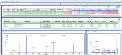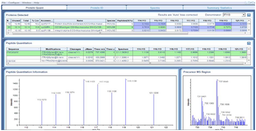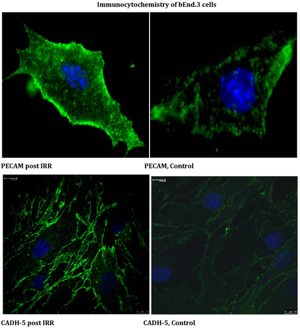 NanoLC ESI MS/MS data were submitted to Protein Pilot V4.0 (AB Sciex). iTRAQ MS identified on average 112 proteins from 1120 distinct peptides from 3 independent biological replicates. The detected protein threshold (unused ProtScore) was set as >1.3 (better than 95%confidence). 11 proteins were significantly differentially expressed in at least 2 out of 3 experiments. The most extensive changes were observed after 48h post radiation, e.g. cadherin 5 & CD109 (Table 1) (Figure 4‒8).1-12
