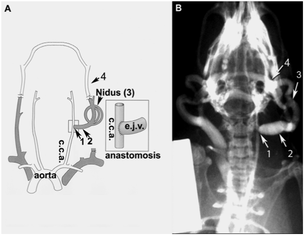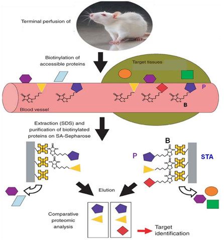 In vivo biotinylation of the rat model of AVM was also conducted. The rat was perfused with NHS-LC-biotin, the fistula was harvested, membrane proteins were extracted and captured on streptavidin resin, digested with trypsin and analysed by LC/MS.