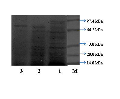 Determination of molecular weight of purified protein by SDS-PAGE: The molecular weight of purified L-asparaginase was determined by (SDS-PAGE) the method of Laemmli.17 SDS-PAGE was performed using a 12% polyacrylamide gel. The proteins were stained with coomassie brilliant blue R-250. The molecular weight of purified enzyme was determined using standard molecular weight markers (Bio-Rad).