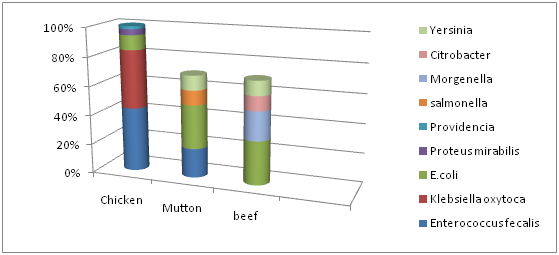 Our aim here was to enumerate the bacteria sampled from various sources of meat procured from different poultry breeders and slaughter houses14 in Hyderabad, and determines the most predominant pathogenic species found in meat.