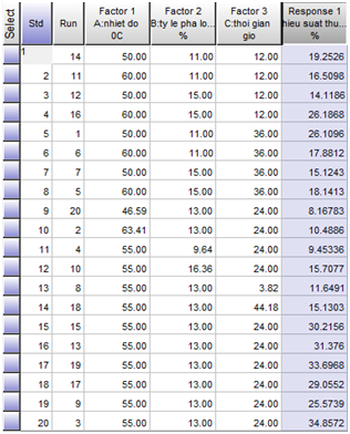 According to ANOVA dialog box, F-value under Model is 3.66, only about 2.78% deviation compared to the actual value of calculation and other face value "Prob>F" less than 0:05. Therefore, the model fit the experimental laws.