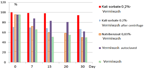 The products obtained from vermiwash: Autolysis may collect the following products: earthworm solution, vermiwash, after centrifugation vermiwash (Table 2). Hydrolysis doubly increased protein amino and high amino nitrogen value in vermiwash and after centrifugation vermiwash, depending on the purpose of the application; we will have the choice of suitable production plans.