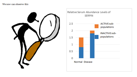 In this model case, the ratio of the ACTIVE sub-population vs. the INACTIVE sub-population is greatly altered in disease, whereas simple abundance measurements of the total population would not be very informative. In the following Figure 4, we report on the SERPINs observable by LC-MS and how they bias towards AlbuVoid™ and AlbuSorb™ (Table 1).
