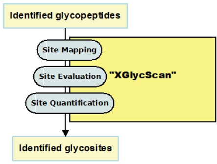 We first introduced a concept of XGlycScan in Unipep45 as non-redundant N-linked glycopeptide generation. Here, we present XGlycScan as a platform independent, open-source, and freely available (recommended attributes of an ideal automated glycopeptide analysis tool17) analytical tool to resolve the glycosites to which mass spectrometry identified PSMs map and to accurately quantify the abundance of such.
