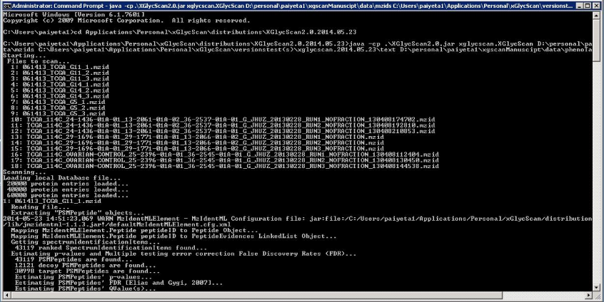 (Figure 3A) shows a typical XGlycScan command-line session. (Figure 3B) shows a graphical user interface program initiation session.