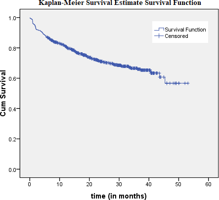 The collected data were coded and stored in MS-excel and exported to R 3.2.2 and SPSS version 20 for analysis. Kaplan-Meier (K-M) plot was applied to assess the survival experience among the different categorical predictor variables.26 Log-rank and Wilcoxon tests were used to assess the significance difference between survival status of categorical variables for quality tests.