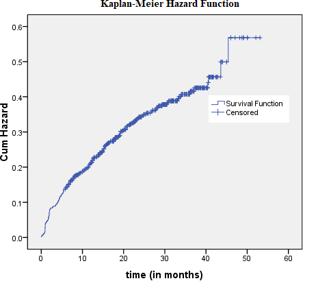 Univariate analysis was performed to screen out the potentially significant predictor variables at 25% significance level. The association between the significant variables and time-to-event were conducted using Cox-Proportional Hazard (Cox-PH) model.27 The 95%CI for hazard ratio (HR) was considered, and p-value ≤ 0.05 was used to statistically associate with time till the first event in months.