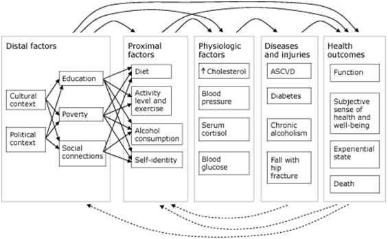 O’Carroll et al.,1 define public health information systems as information systems exclusively used in public health domain to collect, store, monitor, manage, and exchange public health data. Public health information systems can be used at the local level (county health systems), state or regional level (state health systems), and the national or federal level (national systems such as National Vital Statistics). Correspondingly, population health outcomes are defined as the health states of a population or community as a result of a public health intervention. Parrish2 agrees that those outcomes are influenced by results from “a complex web of cultural, environmental, political, social, economic, behavioral, and genetic factors” as illustrated in Figure 1.