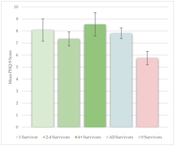 Figure 2 Mean PHQ-9 scores for all Armenian branches stratified by number of direct genocide survivors in participants’ ancestry.