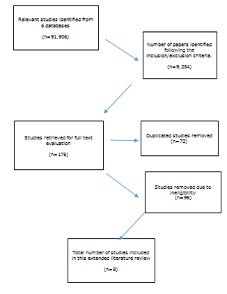 The inclusion and exclusion criteria were used for a meta-analysis of the initial 91,906 papers found, reducing the number to 9,254 as demonstrated on the PRISMA flow diagram (Figure 1) further discussed in the results section of the paper.