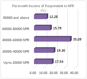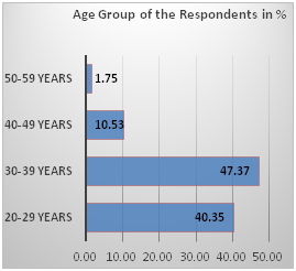 Out of 57 respondents, 67% of the respondent were male. The gender distribution across all positions was proportional; however, not a single female was found in senior executives (14 out of 57 were all men). 87% respondent was below 39 years, which shows the workforce is overwhelmed by the young and energetic age group people. Only one percent respondent was over fifty years of age. Ethnic inclusion and diversity were also analyzed. Over eighty percent of the respondents were either from Brahmin (47%) or Newar (33%) social strata. Chetteris were the third shared 14% of inclusion, whereas, 5% inclusion from Terai higher caste group found. Composition and diversity of workforce to ethnic nationalities, minorities and Dalits was yet to be seen. The educational qualification of respondents was predominated by the Master’s Degree holders (83%), whereas, above master’s degree qualification was twelve percent participation. Only five percent came from Bachelor’s degree background. Most of the Bachelor’s degree holders were from below 30 years of age group; except one respondent who crossed that age bar (Chart 2), (Chart 3).