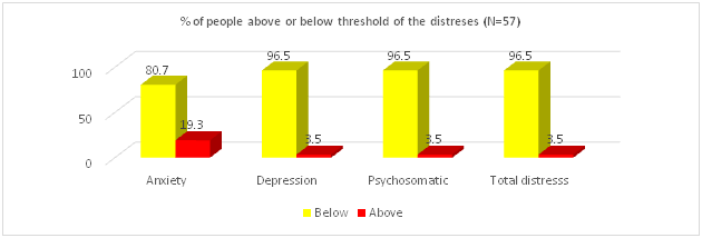 Results:The Anxiety scores of 19.3% (N = 57) respondents were found to be higher than the threshold. The depression and psychosomatic assessment revealed, 3.5% of the respondents were above than the cut off scores, and 1.75% was found to be in need of suicidal care immediately. 76% respondents perceived, their managers and institutions took measures for the reduction of distresses and equally found hopeful for the support in future disasters too.