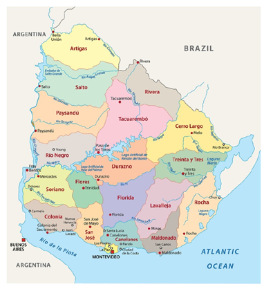 Figure 1 Uruguay map showing the political-administrative division (19 departments)