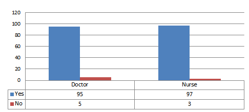 Doctors with varying working experiences in different departments at JTH for at least six months. Nurses; with varying experiences and qualifications who were working in different departments at JTH for at least six months. Sample Size; Our study targeted one hundred (100) participants grouped as follows; Fifty (50) patients, thirty (30) nurses and twenty (20) doctors from the above-mentioned departments at JTH.