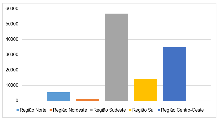 Regarding palliative care services by region (Graph 2), it is observed that the Southeast region had the highest number of palliative care services in Primary Health Care in Brazil, in the period under study with n=56777 services, which is equivalent to 50% of the sample; followed by the Central-West region with n=35021, which represents 31% of the sample; the South region comes next with n=14401, equivalent to 13%; the North region had n=5607, representing 5% of services and the Northeast with n=1270, representing only 1% of palliative care services in Primary Care.