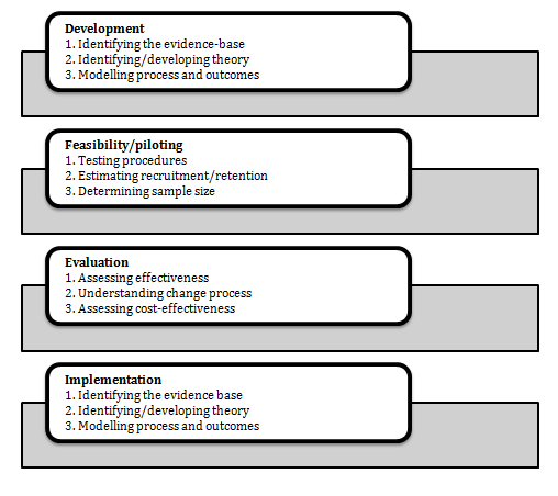 This Y-PATH intervention was initially based on the Medical Research Council’s (MRC) guidance document, ‘Developing and Evaluating Complex Interventions’,51 which is shown in Figure 2. Since the inception of this evidence-based study, the Y-PATH programme has progressed from the theory/modelling phase one,8,38 to the exploratory trial phase two39 and is currently, undergoing the definitive randomised-controlled trial of phase three. The four stages, as outlined in the MRC document, for ‘Developing and Evaluating Complex Interventions’ are: 1) Development, 2) Feasibility, 3) Evaluation, and 4) Implementation.
