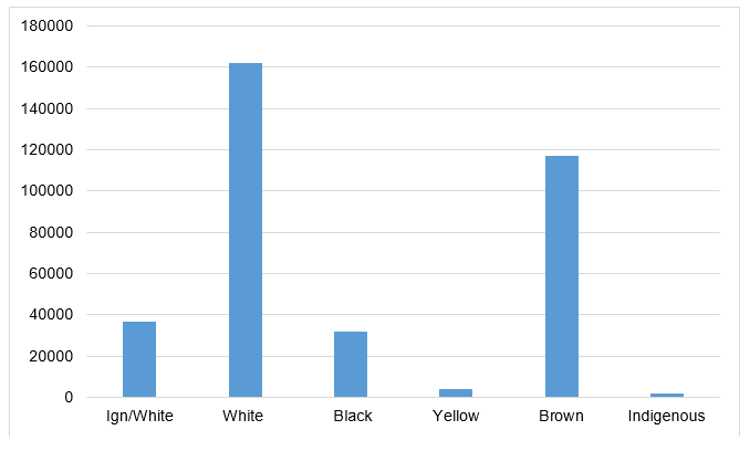 About confirmed cases of viral hepatitis related to race (Graph 4), the most prevalent race in Brazil was White, with n=162206, the second most prevalent was the Brown race, with n=117190, the third position was occupied by the race classified as Ignored/White with n=36811, followed by the Yellow race with n=3915 and the Indigenous race represented the smallest number of confirmed cases of viral hepatitis in the national territory, with n=1892.