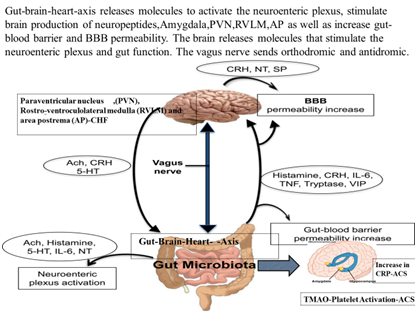 Figure 2 Gut microbiota-brain-axis release molecules that can activate the neuroenteric plexus, stimulate brain production of neuropeptides, POMC,AN and amygdala resulting in to heart disease.