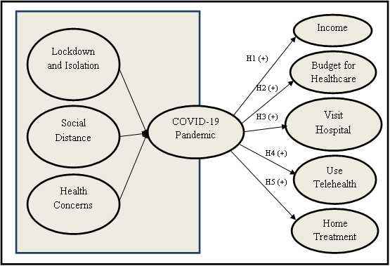 Coronavirus recently revealed that it’s a disease that can be transferred from one person to another. The governments of different countries took steps like isolation, lockdown, and quarantine to minimize COVID-19's negative effects. People who maintain quarantine are facing mental stress and financial hardship. With the decline in interpersonal agreement and community functions, different psychological complications have emerged and perversities are being reported.9 The novel coronavirus 2019 pandemic has shifted health care, faced problems with supply limitation and fright of shipment. We announced the clinical habit model shifts in a head and neck surgery unit of a tertiary cancer epicenter and practiced the expression outskirts of a different form of care during the corona pandemic.10 The novel coronavirus is a bit challenging in the present situation around the globe. With no annotation and insufficient medical facilities to treat coronavirus-infected patients, non-pharmaceutical interventions (NPI) are the primary strategy for containing the COVID-19 pandemic. Infrequent world travel abridgments, as well as home quarantine command, are creating a greater acute breakdown of the world economy than since World War II.11 Because of the corona pandemic, lockdowns, isolations, and government rules and regulations have had a significant impact on consumer income and consumption.12 Due to the corona pandemic, consumers faced problems like mental stress, depression, and physical stress, and so on (H1, H2).13