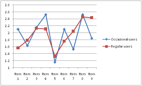 According to this hypothesis the representation of regular users will show lower risk awareness.
