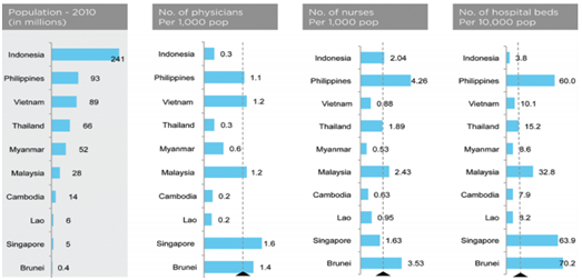 According to the documents and literature analysis, i found that Cambodia still needs a highly skilled professional health care workforce to address the country’s significant health challenges. Ozawa et al.,20 have shown that the popular view of quality of care by public and private providers in Cambodia relates to waiting time, perceived costs, effectiveness and availability of medicine, mode of administering medicines and interpersonal skills displayed by medical personnel. Among the users of the public health services, many complain about lack of hygiene and high cost.21 Anecdotal evidence suggests that services provided by the private sector are often unnecessarily expensive and of questionable quality.22,23 An increasing number of patients are seeking care abroad, mainly in neighboring countries such as Thailand and Viet Nam. Most hospitals lack modern trauma units or services such as ambulances with trained medics. Local hospital staff may be able to stabilize patients, but a serious accident will require an evacuation to Bangkok by helicopter or car. The safety of blood transfusions also varies from hospital to hospital, and should be avoided outside of Phnom Penh. Despite this challenge, Cambodian doctors-particularly specialists-are gradually catching up with their counterparts elsewhere in Asia, says Park, who also heads the Cambodia Neurosurgery Support Project to train local neurosurgeons. The figure below show the comparison of healthcare among ASEAN countries, not surprisingly, higher-income countries are well-ahead of the lower-income ones in terms of resource availability for health, healthcare coverage and quality of care (Figure 2). The numbers of Cambodian going to Vietnam for healthcare has increased 20% in the first half of 2015, according to the official figure from Ministry of tourism. They are going to Vietnam because they can find a wider range of services and the quality is better than home country.24 Anyway, according to Taikry25 said that “there are not enough human resources and hospitals, though we have the same standard. The medical services and hospitals in Cambodia do not meet international standards and lack hands-on training of advanced practical applications by medical professionals.26 The randomly selected of interviewer mentioned that, the medical practice is still poor, doctors usually appear arrogant and wouldn’t tell patients why they would prescribe certain medicines to them, the cost of treatment is expensive.27