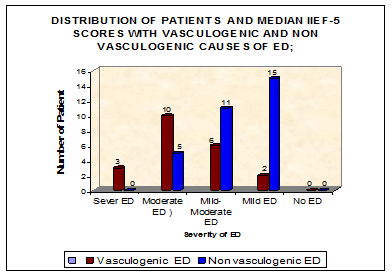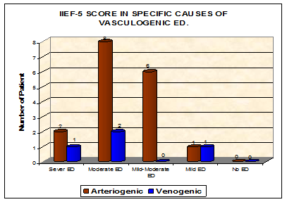 Graph 4 Significant difference was detected in IIEF-5 scores of men with non vasculogenic ED then those with vasculogenic causes of ED.