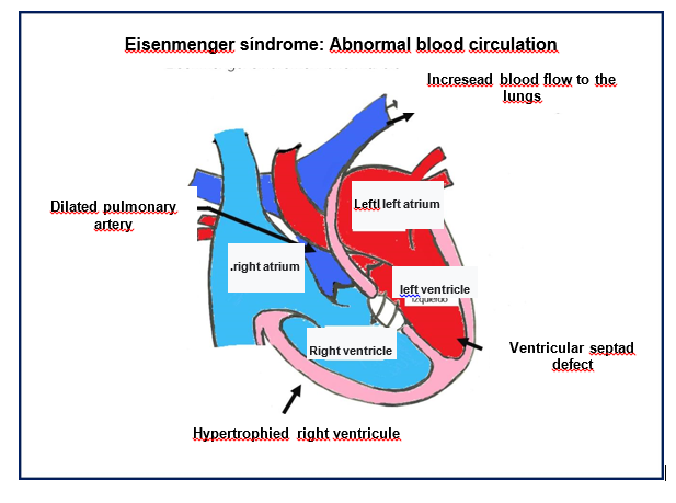 Congenital heart diseases such as Eisenmenger Syndrome usually condition the appearance of pulmonary arterial hypertension due to flow overload due to the shunt, which leads to right ventricular cardiac dysfunction, the patient's condition is triggered by pregnancy since plasma volume increases, increasing cardiac output and the refore worsening ventricular cardiac dysfunction leading to decompensation of their heart failure and the rest of the complications already mentioned, the prognosis in patients with this pathology depends on diagnosis and treatment from early phases, since in advanced phases the only treatment is a heart and/or lung transplant, but in advanced cases the treatment is only symptomatic; in the case of young women, the recommendation to avoid pregnancy due to a high risk of morbidity and mortality.