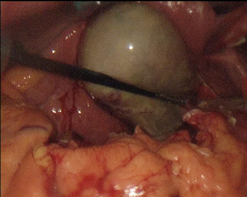 Figure 2 Gallbladder with signs of acute cholecystitis during the performance of a laparoscopic cholecystectomy.