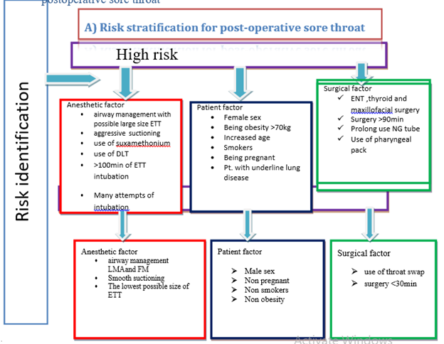 Conclusions and recommendations: POST is linked to mental states like anxiety as well as to the most common patient characteristics, such as age, gender, and smoking. Anesthetists should act accordingly to minimize post-operative sore throat.