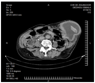 Keywords: Delbet's blade, seroma, surgery, surgical exploration, scanning evidence, peritonitis, xypho-pubic laparotomy, computed tomography, myorraphy, surgical drapes, radiopaque, iatrogenic