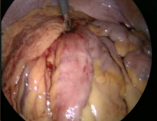 A 24-year-old female patient who underwent an apparently uncomplicated caesarean operation at a different hospital; the product delivered without apparent pathology. On the second postoperative day, she presented biliary pancreatitis. Because of this, she was admitted to the intensive care unit. She referred the hospital stay was thirty days; and she was discharged with the diagnosis of lithiasic cholecystitis. Two weeks after this event, she was attended by our group, because abdominal pain of 48 hours earlier in the right upper quadrant, nausea and vomit. On physical examination, her vital signs were HR 100X’, RR20X’, BP 135/90, T 38.0ºC and SO2 93%. Hemoglobin level 13 gm/dL and WBC 12,000 per mm3. Rest of laboratory test including liver and pancreatic function within normal. Physical examination revealed abdominal distension and generalized abdominal pain, signs of peritoneal irritation and positive Murphy's sign. The abdominal ultrasound reported multiple gallstones, thickening of the vesicular wall and perivesicular edema. She was taken to surgery to resolve the gallbladder problem by laparoscopy. With the anesthetic relaxation, the presence of a hard, non-mobile abdominal mass in the hypogastrium was noted. Pneumoperitoneum was induced with Veress's needle and cholecystectomy was performed as usual without complications. The inspection of the lower abdominal cavity revealed a 15cmX15cm mass constituted by firm adhesions of small bowel loops and omentum in the hypogastrium. Figure 1 Separating the intestinal loops and the omentum we discovered a surgical towel with pus. Careful dissection of the foreign body was performed, separating the surgical mop, taking care not to injure the bowel loops. The cavity left by the textiloma was copiously irrigated. The umbilical wound was enlarged 2cm to extract the gallbladder and the surgical swab. Figures 2,3 The postoperative course was uneventful, tolerating the oral route at 24 hours, being discharged without complications on the second postoperative day.